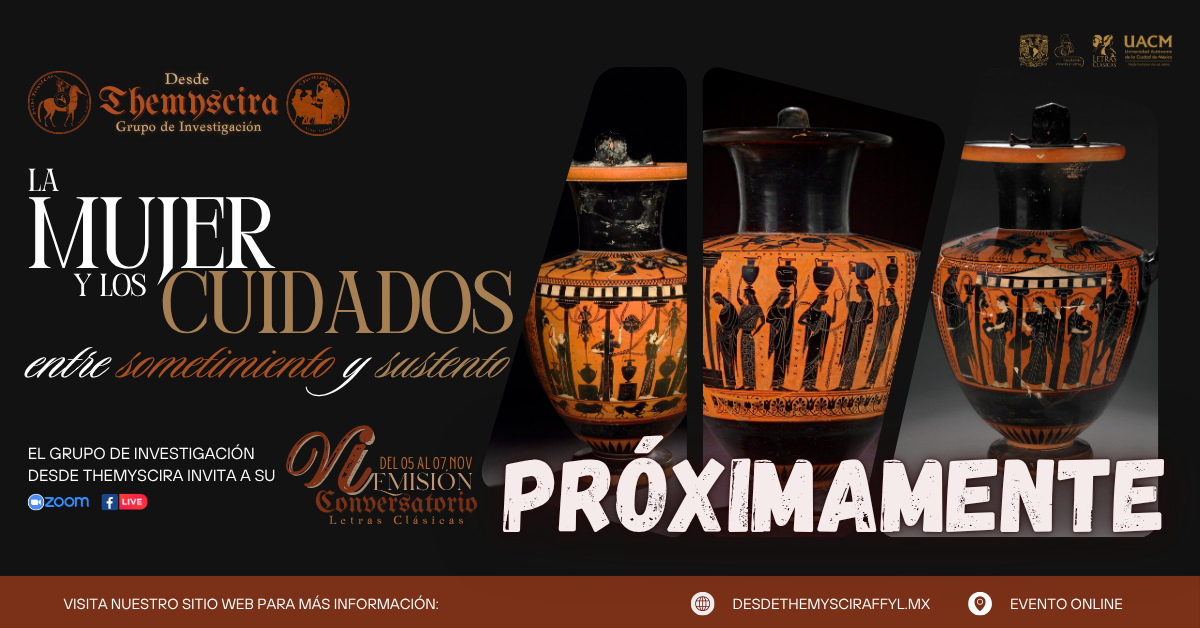 El grupo horizontal de investigación Desde Themyscira se complace en anunciar la VI Emisión de los Conversatorios de Estudios Clásicos titulada la mujer y los cuidados. Entre sometimiento y sustento, que se llevará a cabo de manera virtual durante la primera semana de noviembre de 2025.